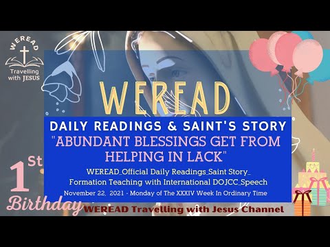 Hello everyone, we come here again to read the Daily Bible Reading according to the Catholic Liturgical Calendar On November 22, 2021 | "ABUNDANT BLESSINGS GET FROM HELPING IN LACK"| Formation Teaching with Selina Hasham from DOJCC Sydney South.
